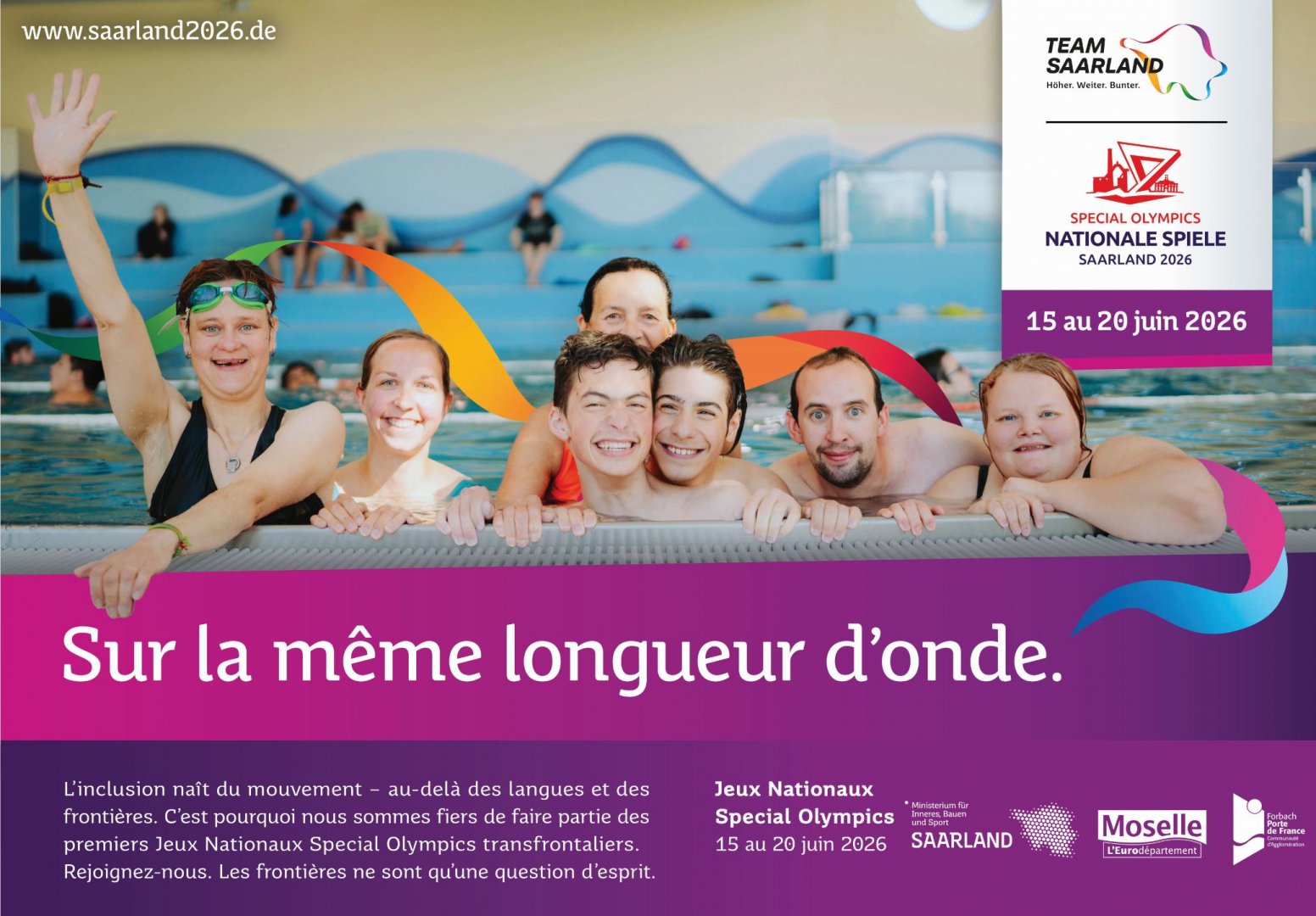 Du 15 au 20 juin 2026, le land de Sarre et la Communauté d'Agglomération Forbach Porte de France accueilleront les Jeux Nationaux Special Olympics 2026, le plus grand événement multisport dédié aux personnes vivant avec un handicap mental.