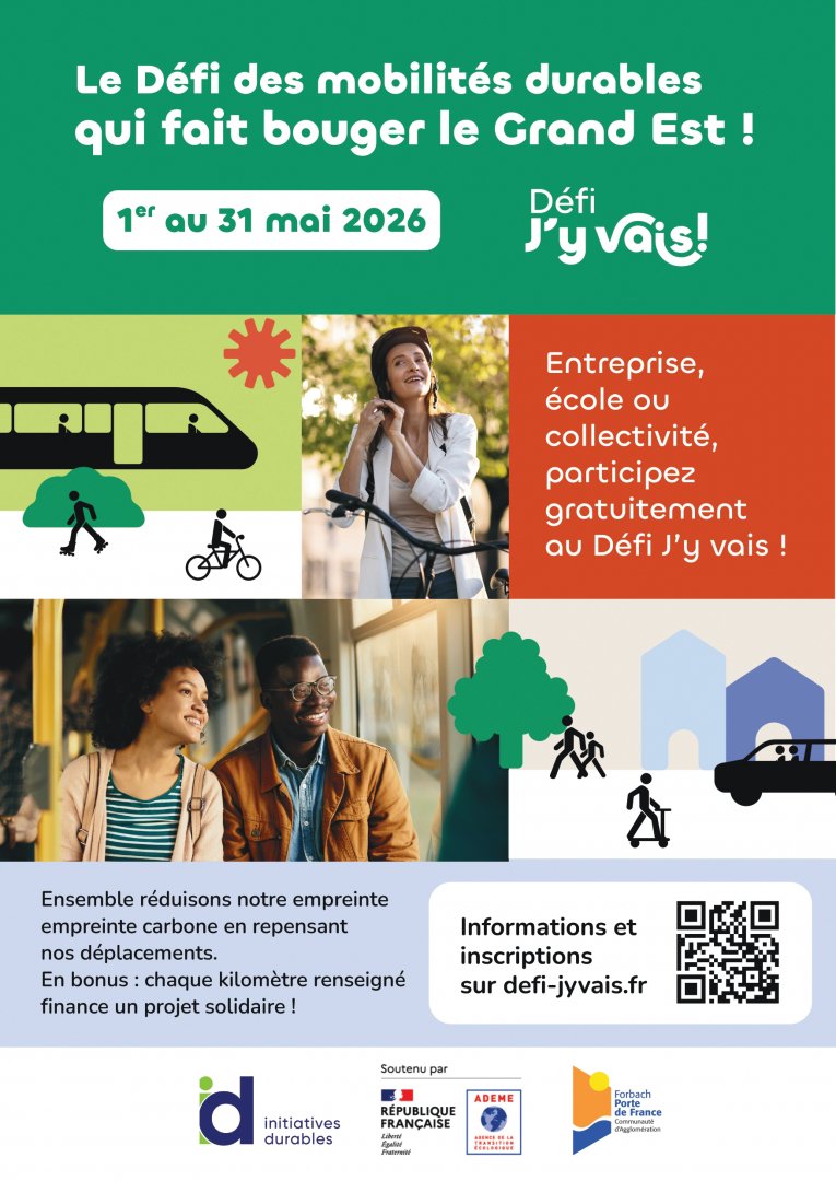 Dans le cadre de sa compétence Santé et celle relative au développement des Mobilités douces respectueuses de l'environnement, la Communauté d'Agglomération de Forbach renouvelle cette année sa participation au Défi « J'y vais ! » qui aura lieu du 1er au 31 mai 2026.