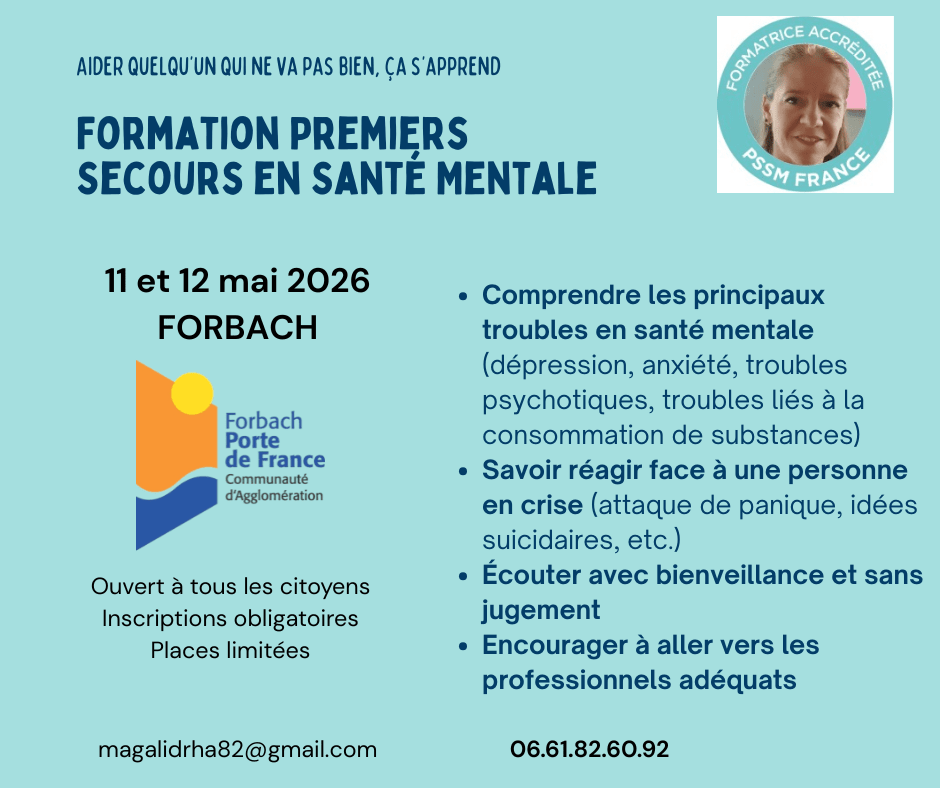 La Communauté d'Agglomération accueillera dans ses locaux, les 11 et 12 mai prochains, une formation de Premiers Secours en Santé Mentale (PSSM), ouverte à tous les citoyens de + de 18 ans.