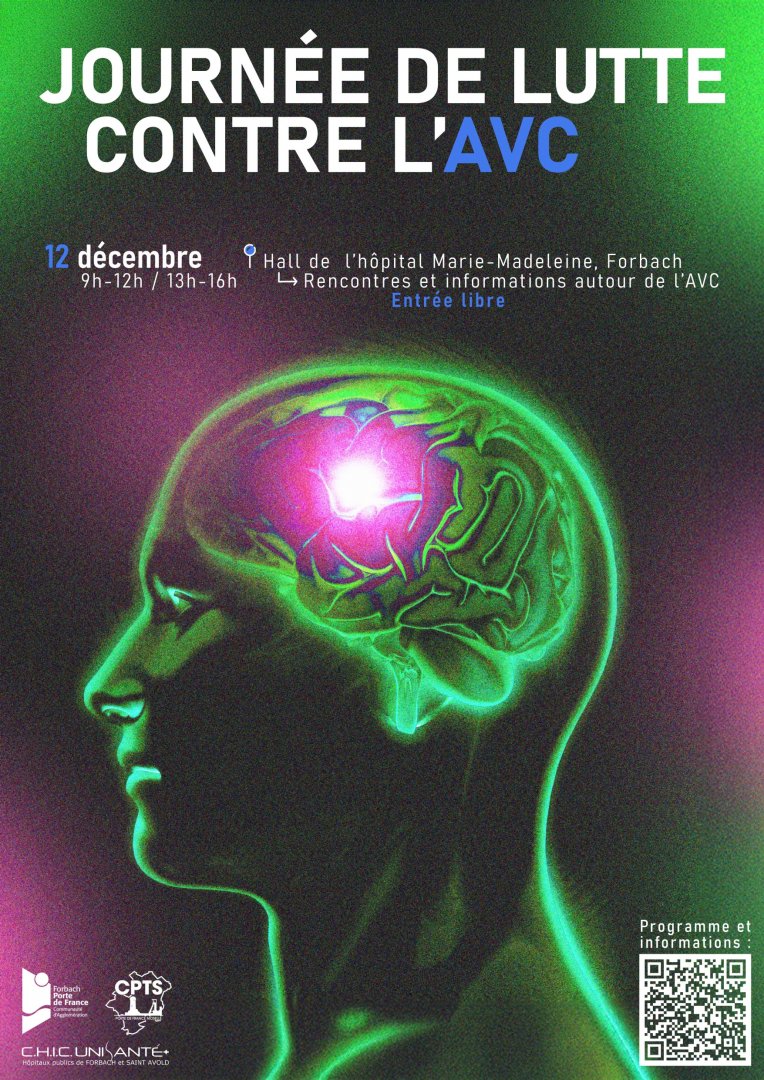 L'Hôpital Marie-Madeleine de Forbach, la CPTS Porte de France Moselle et la Communauté d'Agglomération de Forbach organisent une journée de lutte contre l'AVC. Rendez-vous le vendredi 12 décembre, de 9h à 12h et de 13h à 16h dans le hall de l'Hôpital Marie-Madeleine situé 2 Rue Thérèse à Forbach.